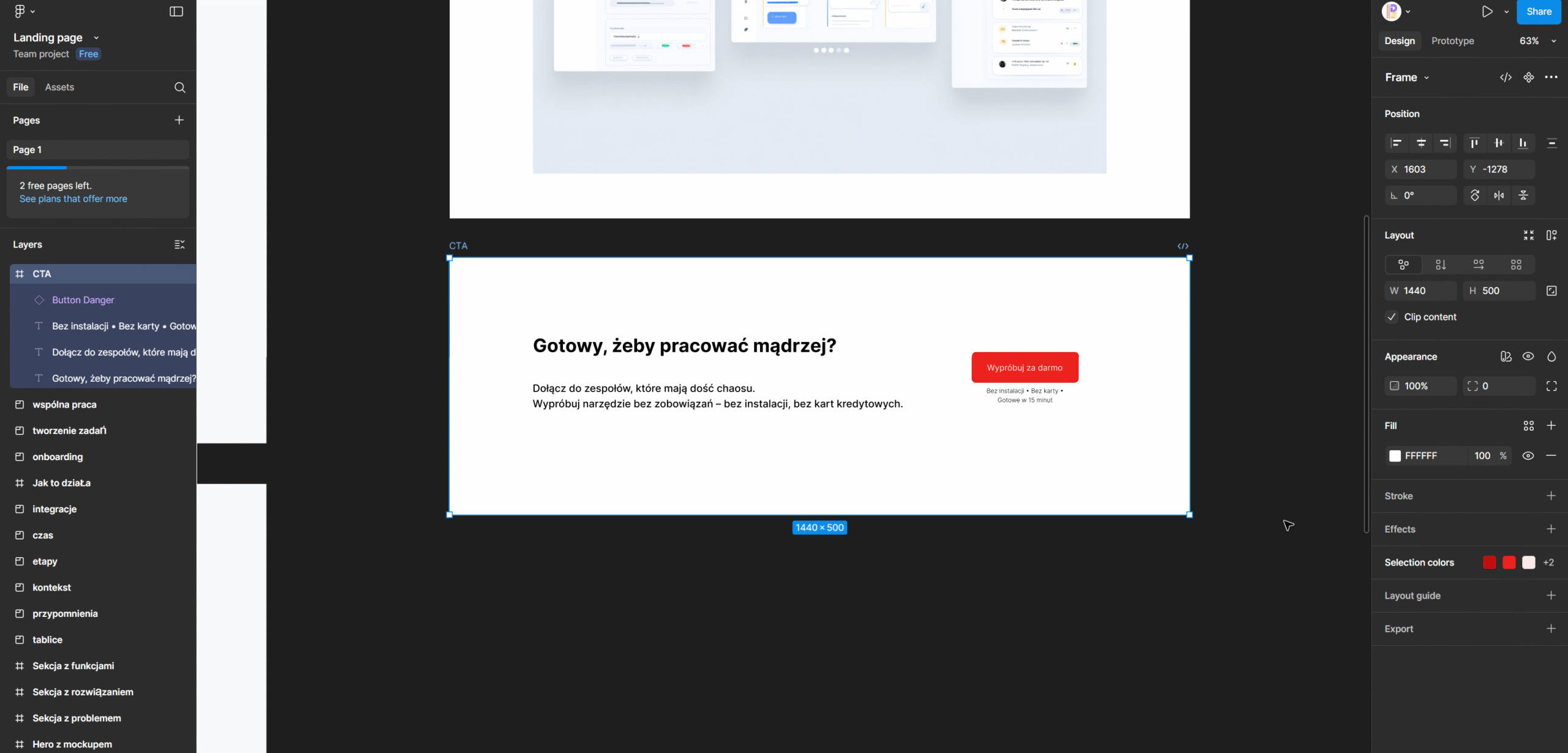 Landing to nie grafika. To decyzja, którą podejmuje użytkownik. Jeśli potrzebujesz strony, która prowadzi do kliknięcia — napisz. Pracuję konkretnie: brief → struktura → copy. Gotowe do wdrożenia.